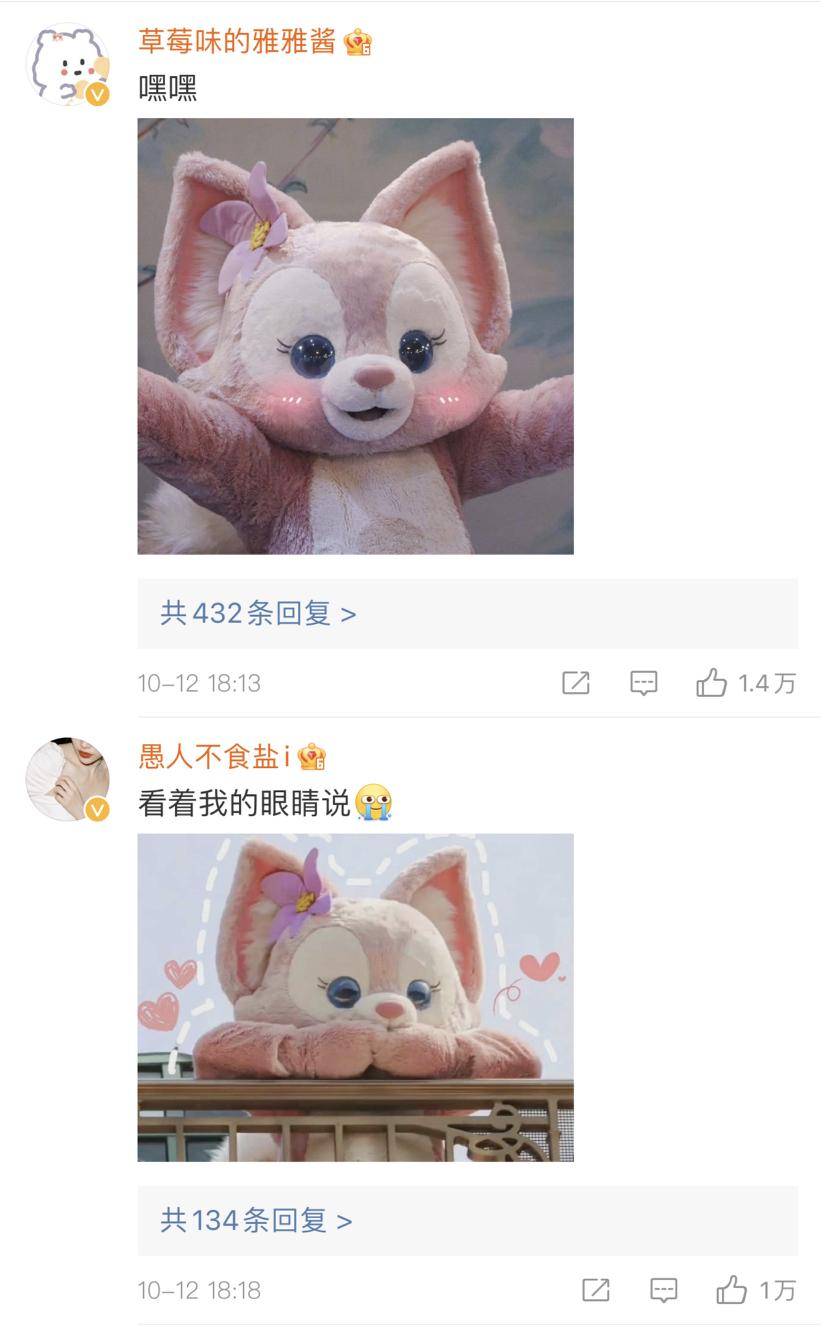 参与其中的人像过年,而对于不了解迪士尼的 DT 君来说,这盛况确实给我看懵了。截至今天,微博话题词#星黛露#已经斩获 4.8 亿阅读量、125.3w 次讨论;#玲娜贝儿#也斩获了 2.4 亿阅读量。