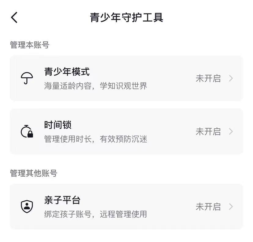 比如抖音也有自己的「青少年守护工具」,逻辑也是类似的。