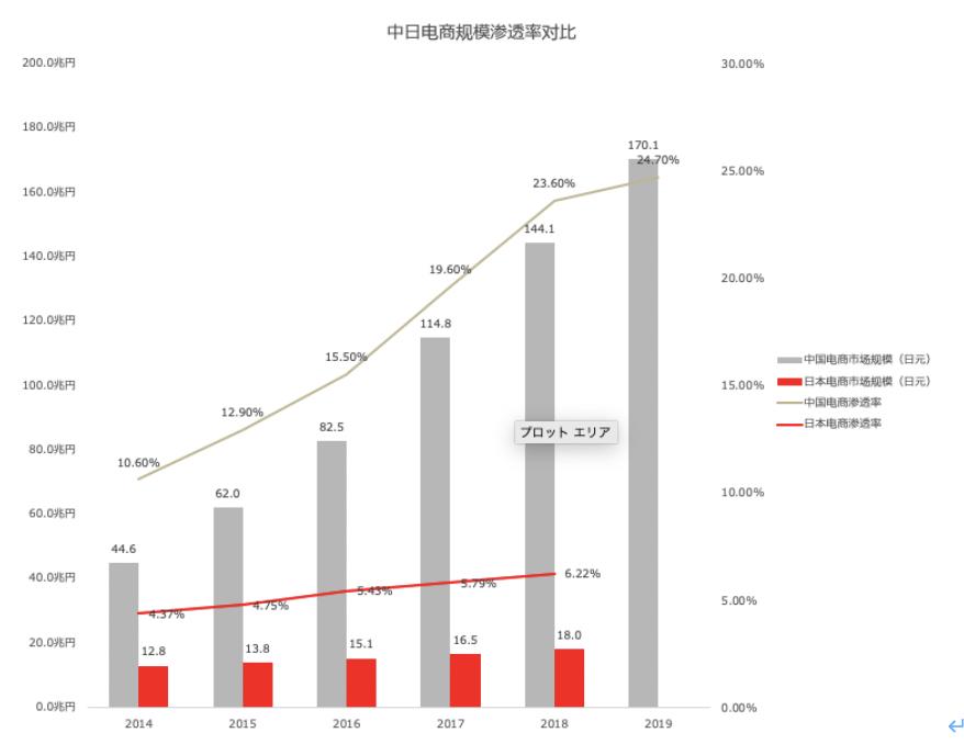 01日本电商市场体量相当,18兆日元为中国的十分之一