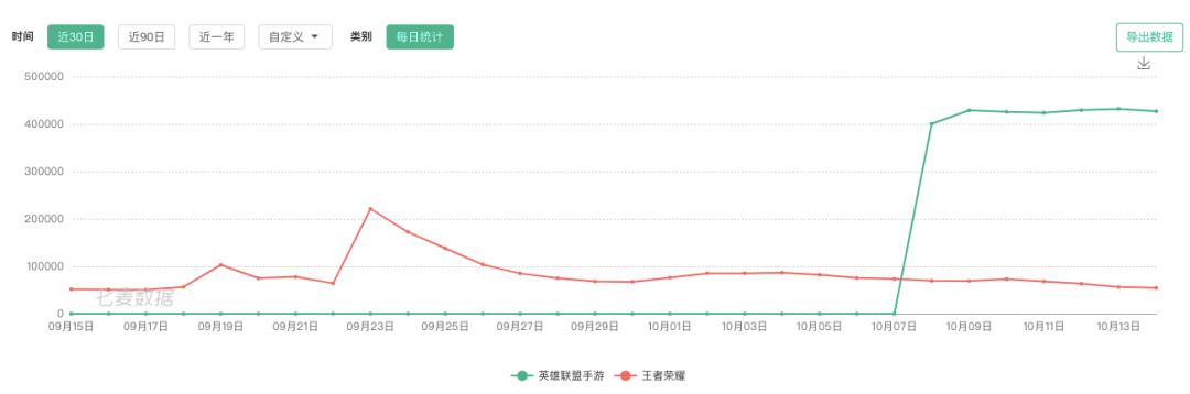 近期《英雄联盟手游》与《王者荣耀》下载趋势 来源 / 七麦数据