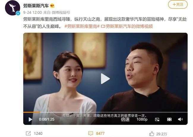 日前,劳斯莱斯汽车官方微博发布一则宣传视频,其中邀请网红夫妻晚晚林瀚参与推广,引发大量负面评价。