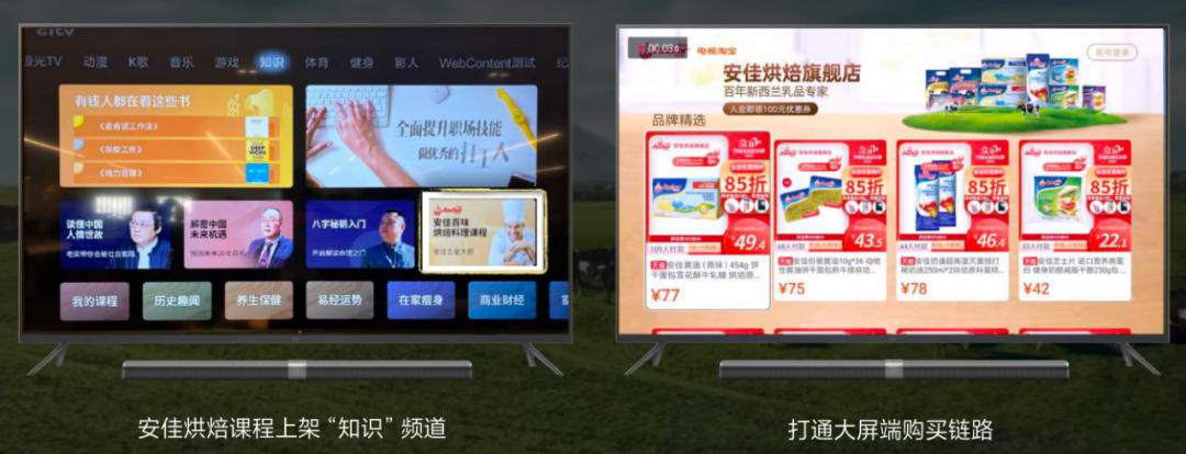 定制内容的价值不只是体现在节日,比如安佳烘就成为小米平台PGC创作者,烘焙和美食课程上架小米“知识”频道,相关内容打通了AI小爱同学、智能音箱、小米手机、小米冰箱、米家电烤箱,全面覆盖用户日常烘焙烹饪场景。相关内容中也植入了购买入口,用户可直接在大屏一键购物。