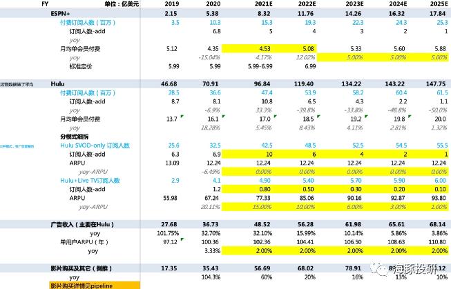 迪士尼旗下其他两个平台——Hulu、ESPN的增长情况,由于篇幅原因海豚君这里就不做详述了,主要参照了市场一致预期情况,具体数据如下,感兴趣的朋友可入群交流。