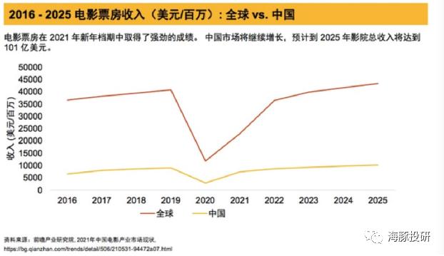 1、 首先,我们要确定的是,目前全球电影市场已经相对成熟,如果不是疫情的冲击,未来几年增速大概率为低个位数。
