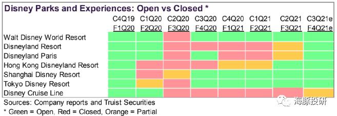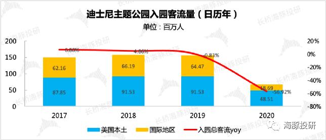 PS:这里提一下,与一般日历年的统计区间不同,迪士尼财报披露的时间周期是日历年中上一年的9月至当年的9月。因此海豚君结合历史情况,对迪士尼的客流量做了日历年转为财年的调整。从结果上看,除了2020年疫情非常态年份,在其它年份下,两种统计周期得出的结果差不多。