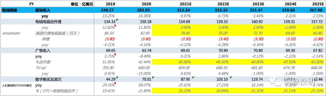 (1)迪士尼这两年刚刚买下的Fox等内容,给了【有线电视】业务收入的一个增长动力。