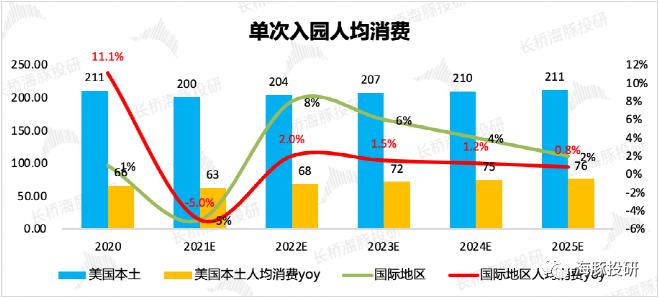 我们这里提出的人均消费,包含了迪士尼财报中定义的入园消费(门票、餐饮、商品等),还包含酒店住宿的费用。