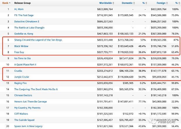 另外,出于不少国家地区未引进上映等原因,也影响了漫威大作《黑寡妇》、《尚气与十环传奇》的潜在价值挖掘。