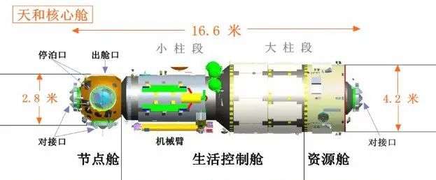 天和核心舱具有前向、后向、径向3个对接口和2个侧向停泊口 | CMS