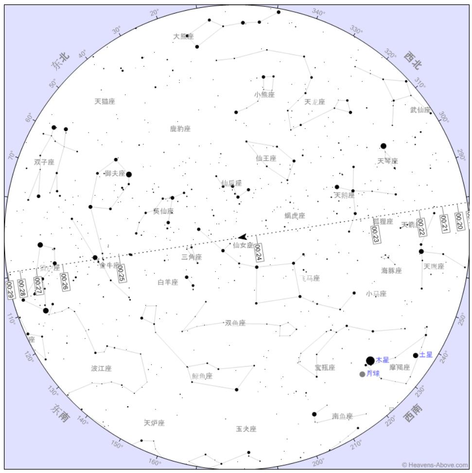 中国空间站于10月16日00:18-00:29过境酒泉发射场,且中天高度为90度 | Heavens-Abobe