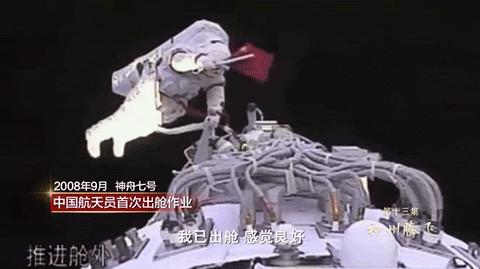 翟志刚在神舟七号任务出舱时挥舞国旗 | 央视新闻