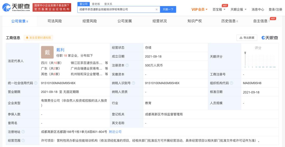 值得一提的是,汇茶目前主要在广东、海南等地开店,而雪王投资公司就位于海南省海口市。