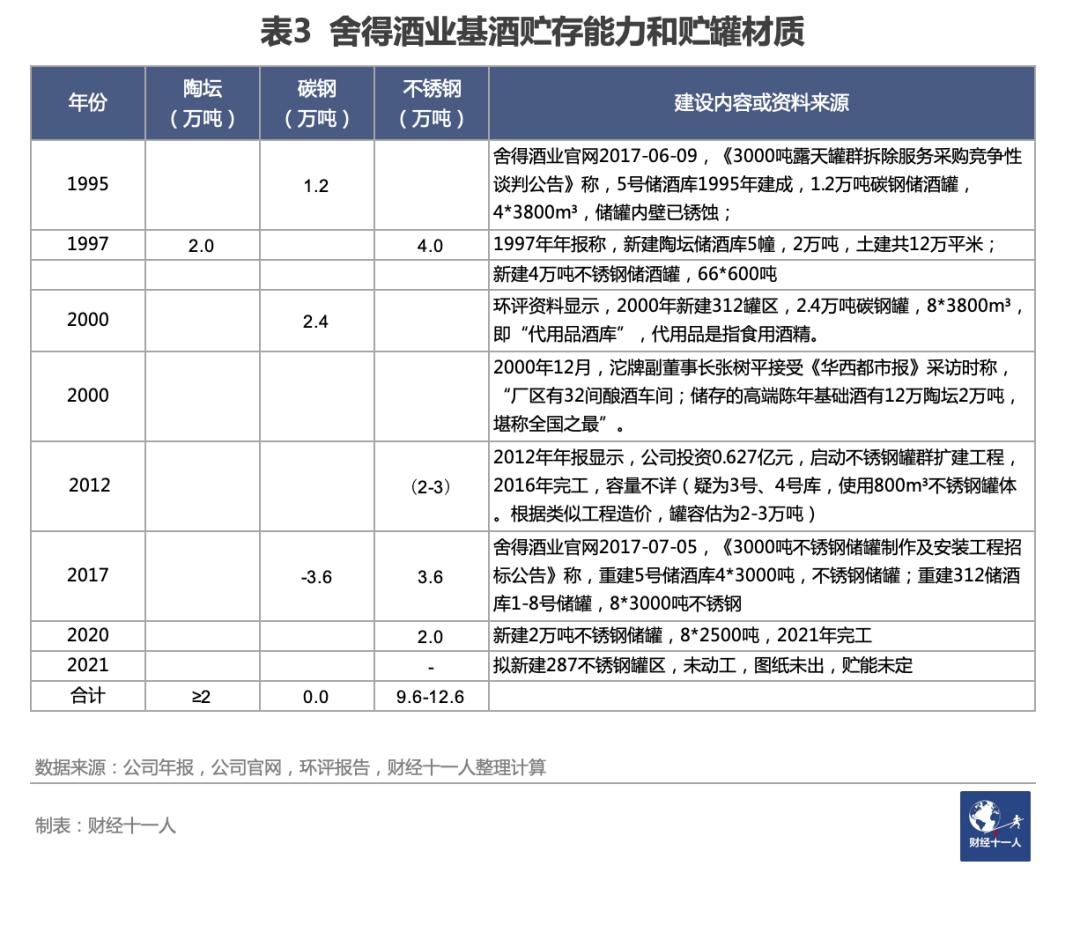 通过查找海量公开资料,《财经十一人》先统计出了舍得酒业的基酒产能和基酒贮存能力。