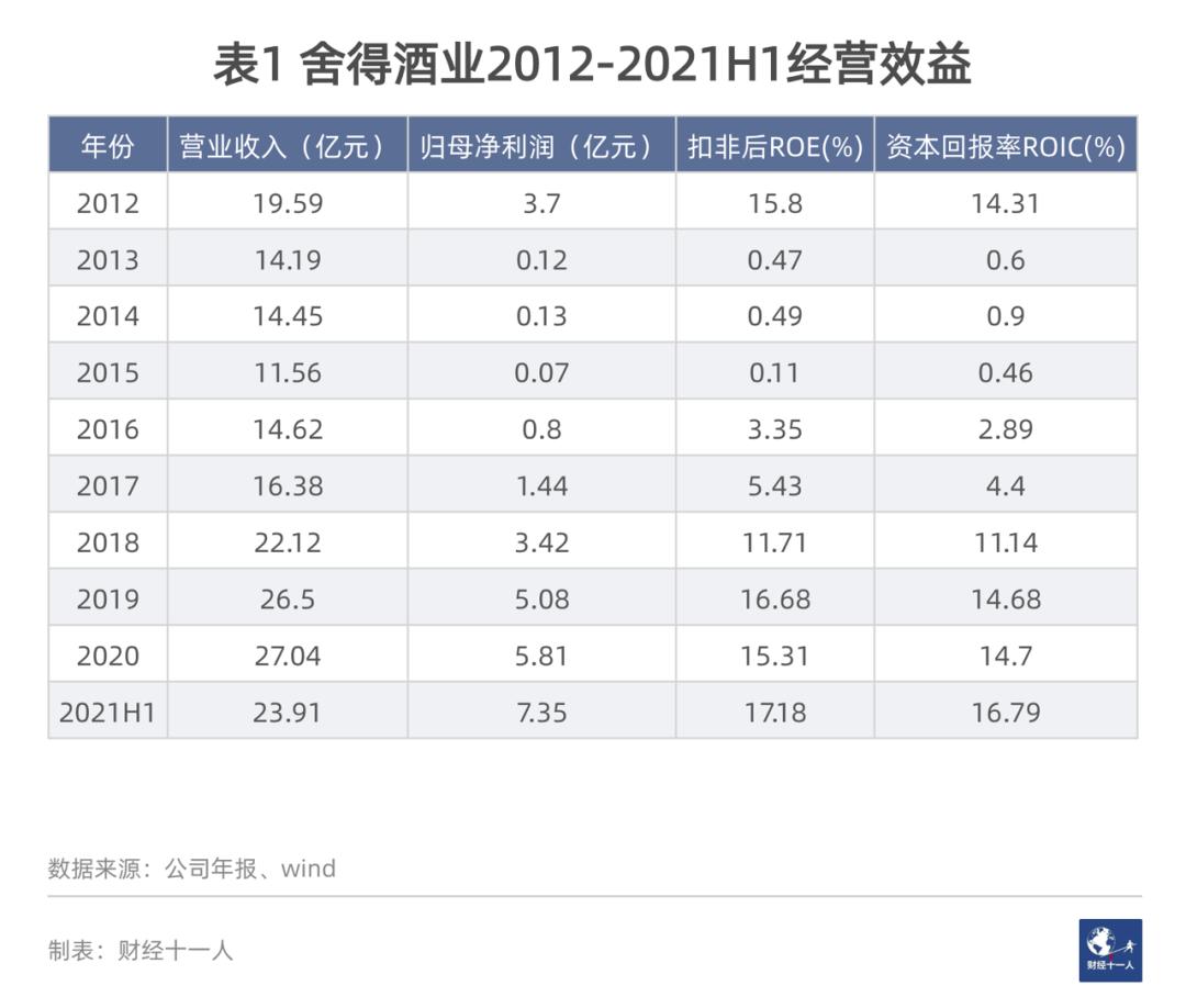 事实上,在2001年后,舍得酒业陷入了低潮,在“白酒黄金十年”里几乎“躺平度日” (见表5) 。