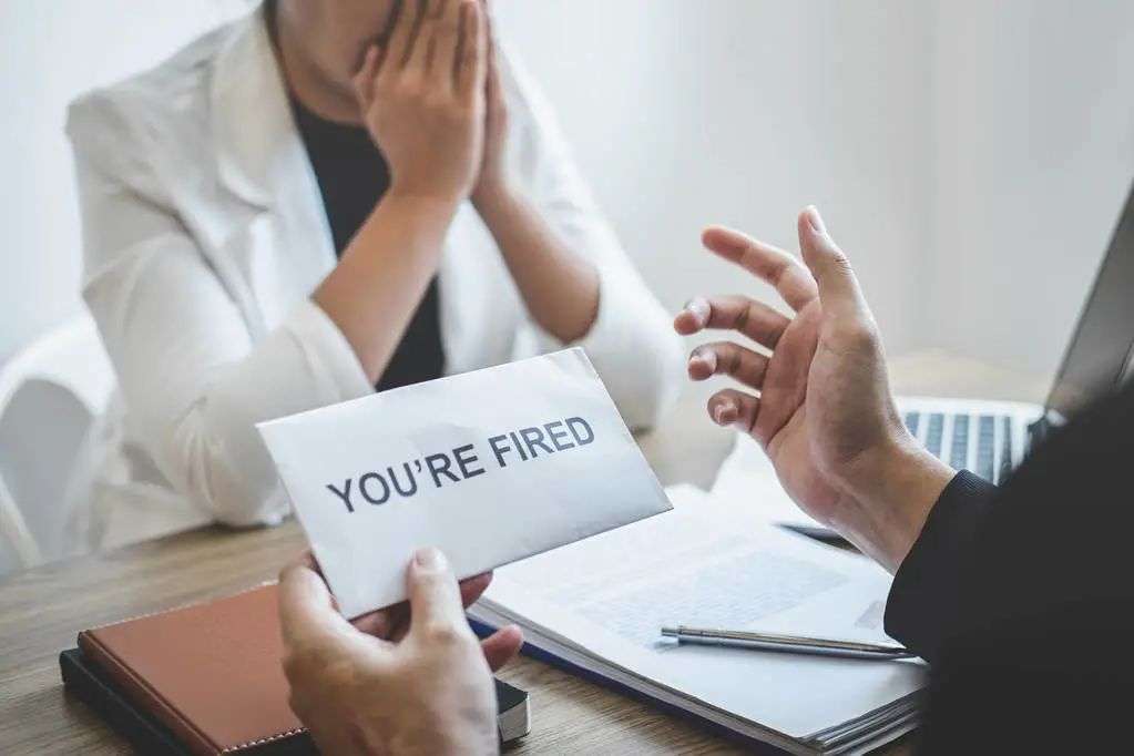 被解雇的人哭着吵着,用力摔门,带着沮丧大嚷大叫。