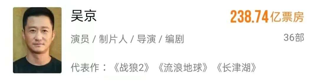 之后,《攀登者》《我和我的祖国》《金刚川》,有吴京参演的片子票房就没下过10亿,成了无数演员可遇而不可求的梦。