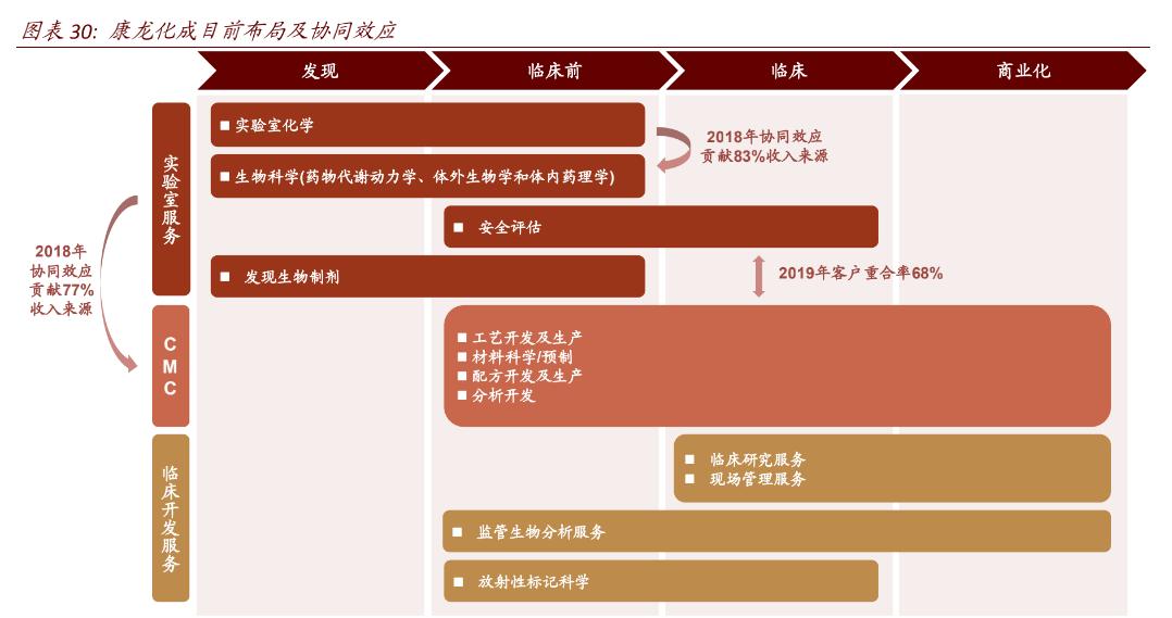 突破与发力,临床前与全流程,康龙化成借助CMC业务平台,不断将前端导流至后端的临床、商业化等阶段。不过,康龙化成的成效还未到资本预期。