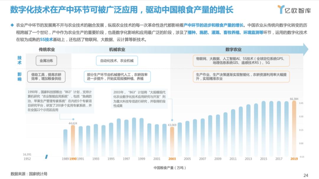 产中:数字化技术在产中环节可被广泛应用,驱动中国粮食产量的增长
