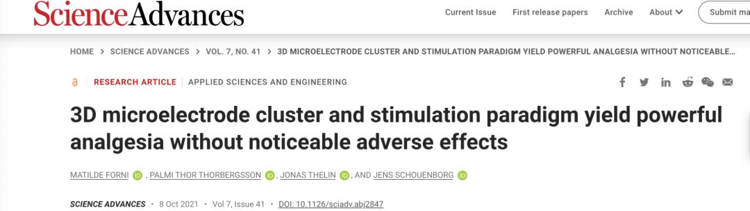 最常用的疼痛管理方法是借助药物。然而,这种方法通常伴随着副作用,有时甚至会产生依赖性或成瘾性。最近,瑞典隆德大学的一组科学家开发了一种无药物技术,可以通过使用超薄、组织友好的微电极进行个性化刺激来减轻疼痛 。
