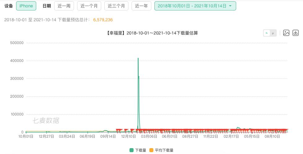 七麦数据:过去三年幸福里IOS下载量预计为650万