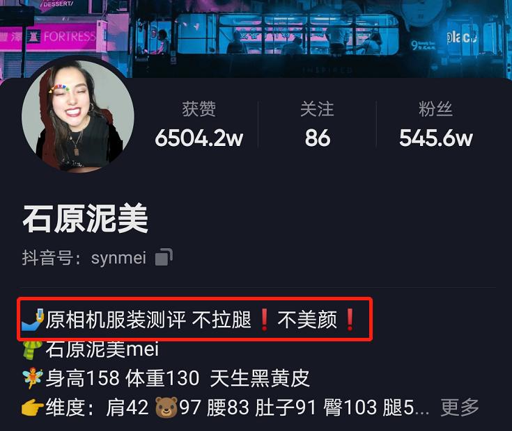 而为了与穿搭博主划清界限,类似“石原泥美”等穿搭测评博主,在账号简介、视频口播中都会反复强调原相机、不拉腿、不美颜,以显示自己没有套路。