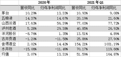 第二阶段 49% 的起底回弹,主要是 4 月份各家白酒企业发布了业绩回暖年报与一季报,尤其是一季报数据。 数据显示,一季度“老八大白酒”营收同比均值为 51.6% ,归母净利润同比增速均值为 164.8% ,业绩数据的大幅反弹意味着白酒消费走出疫情的阴霾,进入常态。