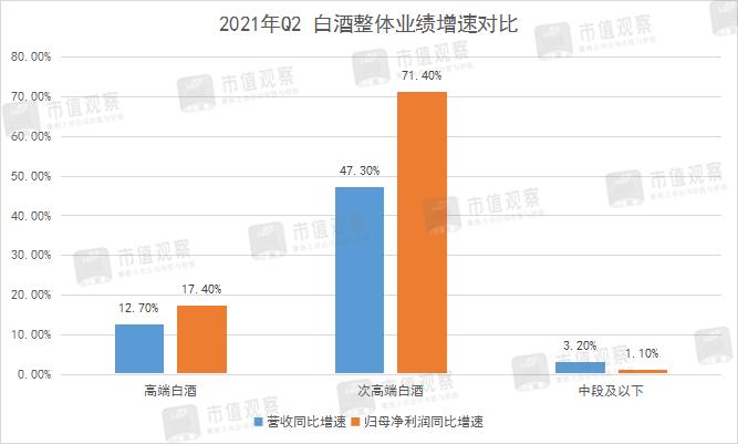 次高端白酒整体营收与归母净利润同比涨幅47.3%、71.4%,较2019年Q2分别增长32.7%、51.2%,呈现高速增长态势;