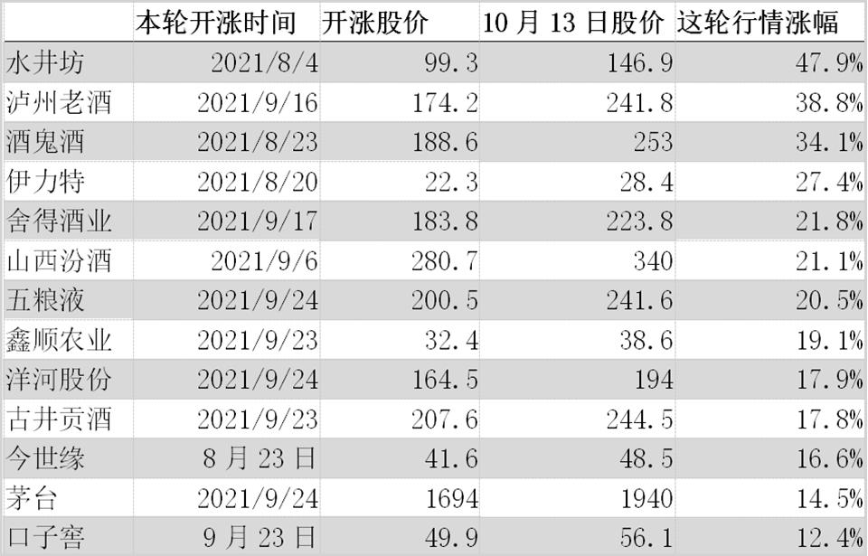 此前尽管“双节”期间白酒板块迎来普涨,但在涨幅及上涨周期方面均呈现出分化趋势。