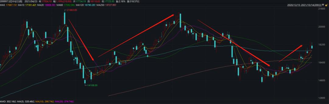 从中证白酒 (399997.SZ) 的盘面走势看,今年前9个月时间白酒至少经历了三个阶段的反转。
