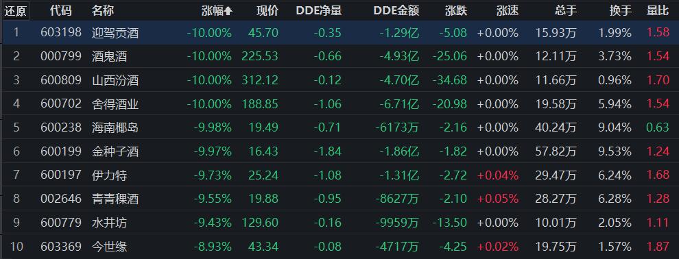 不过,投资者屁股还没焐热,10月18日市场又杀了个回马枪,白酒全线大跌,其中此前涨幅较猛的汾酒、酒鬼酒跌幅达10%、水井坊接近9.43%,茅台、五粮液的跌幅超过6%,市场究竟发生了什么?