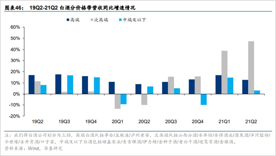 本轮白酒的景气度从大的层面看始于2019年,主要表现在:高端稳中有进,次高端升级扩容。