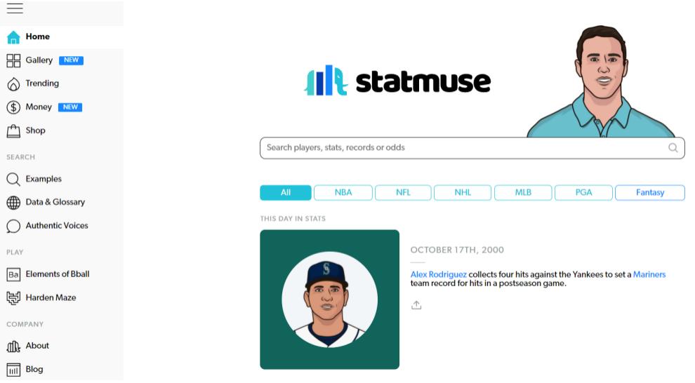 目前StatMuse涵盖NBA、NFL、NHL、MLB和PGA的数据。