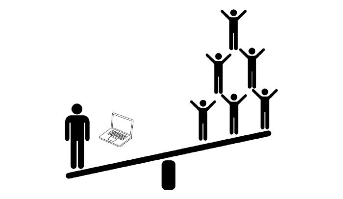 话虽如此,劳动力对于创造一些有价值的东西往往是必须的——没有一个人拥有创建谷歌或Facebook所需的所有技能。但你要最小限度地依赖于劳动力杠杆,而最大限度地利用其他类型的杠杆。