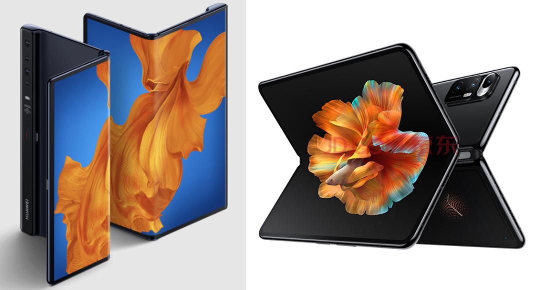 外折的Mate X(左)和内折的小米MIX FOLD(右)