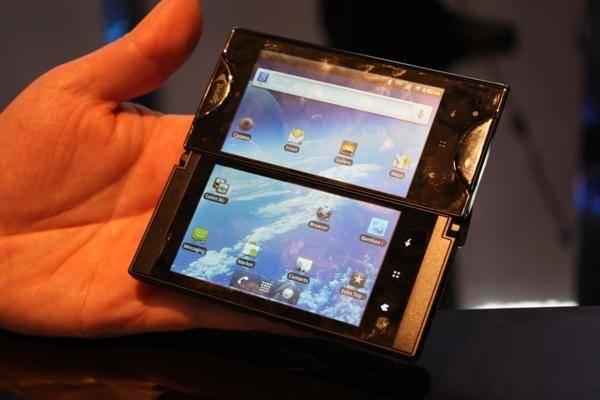京瓷KSP8000放到今天或许只称得上折叠屏手机的雏形。它由两块3.5英寸屏幕组成,双显示屏可以分开单独使用,也可作为一个单独屏幕使用。每一块的分辨率都是800x480,合体之后的可视尺寸是4.7英寸。2017年,中兴也出过一款采取同样双屏折叠方案的手机AXON M。