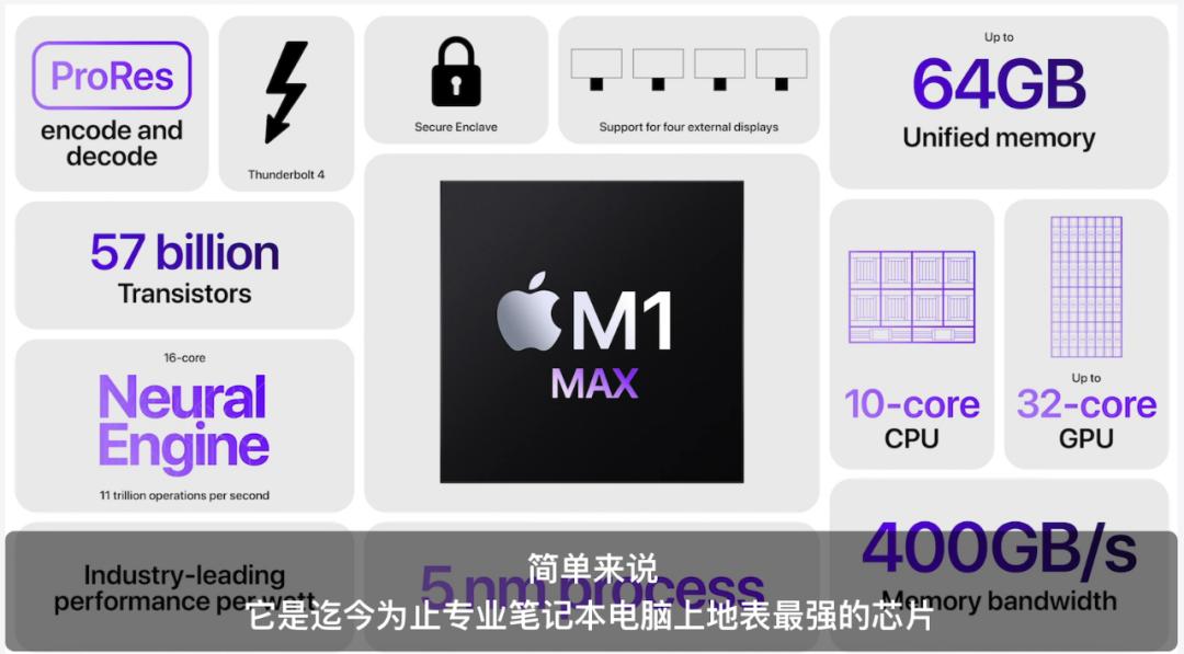 M1 Max各项参数,图源苹果发布会