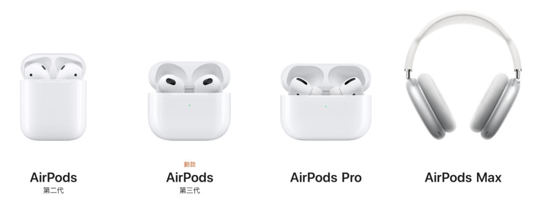 近几代AirPods产品,图源苹果官网