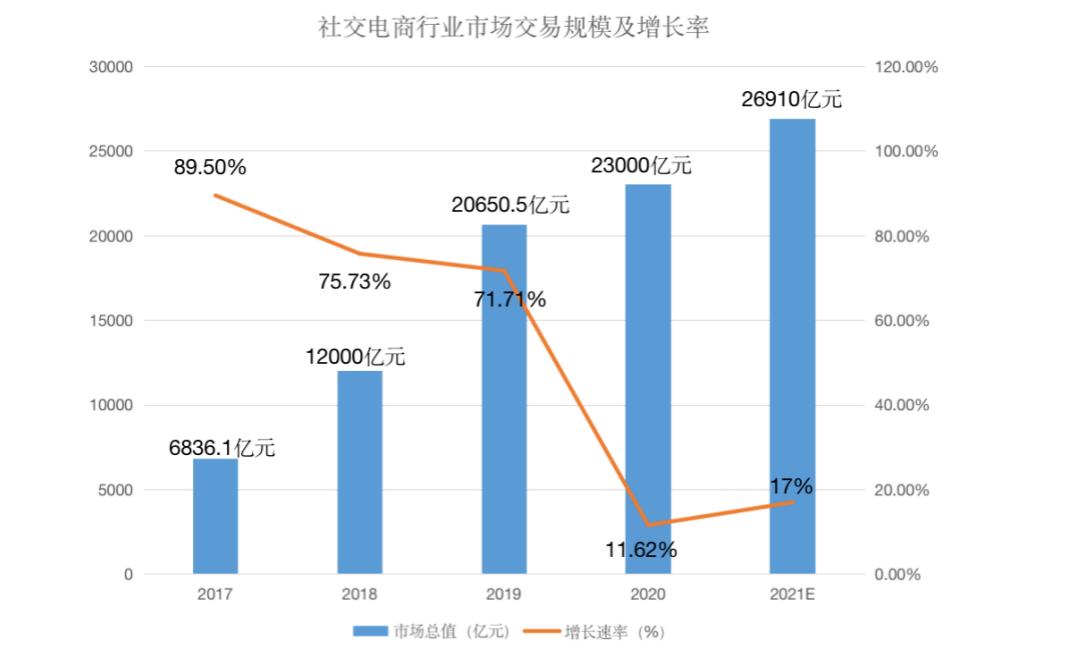 2021年开始,社交电商增长趋势放缓,进入发展期,市场逐渐规范与成熟,更多人从粉丝和自媒体进行电商变现,呈现出多种模式并存发展的新格局,出现新个体经济创业就业模式。