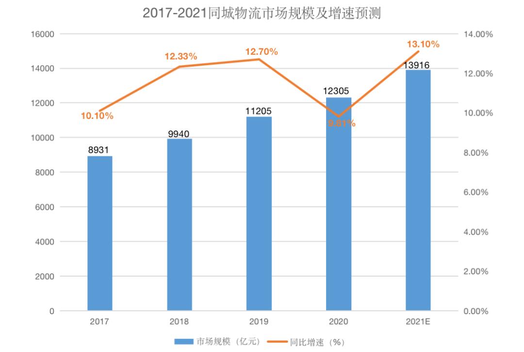 2021年同城物流服务的主要场景包括外卖、B2B零售、商超便利、生鲜宅配、C2C配送需求等。随着用户习惯被养成,从线上平台进行生鲜和快消品类商品的购买,采用即时物流服务配送到家,出现即时需求常态化的新局面,2022年同城物流市场规模将保持10%增幅。