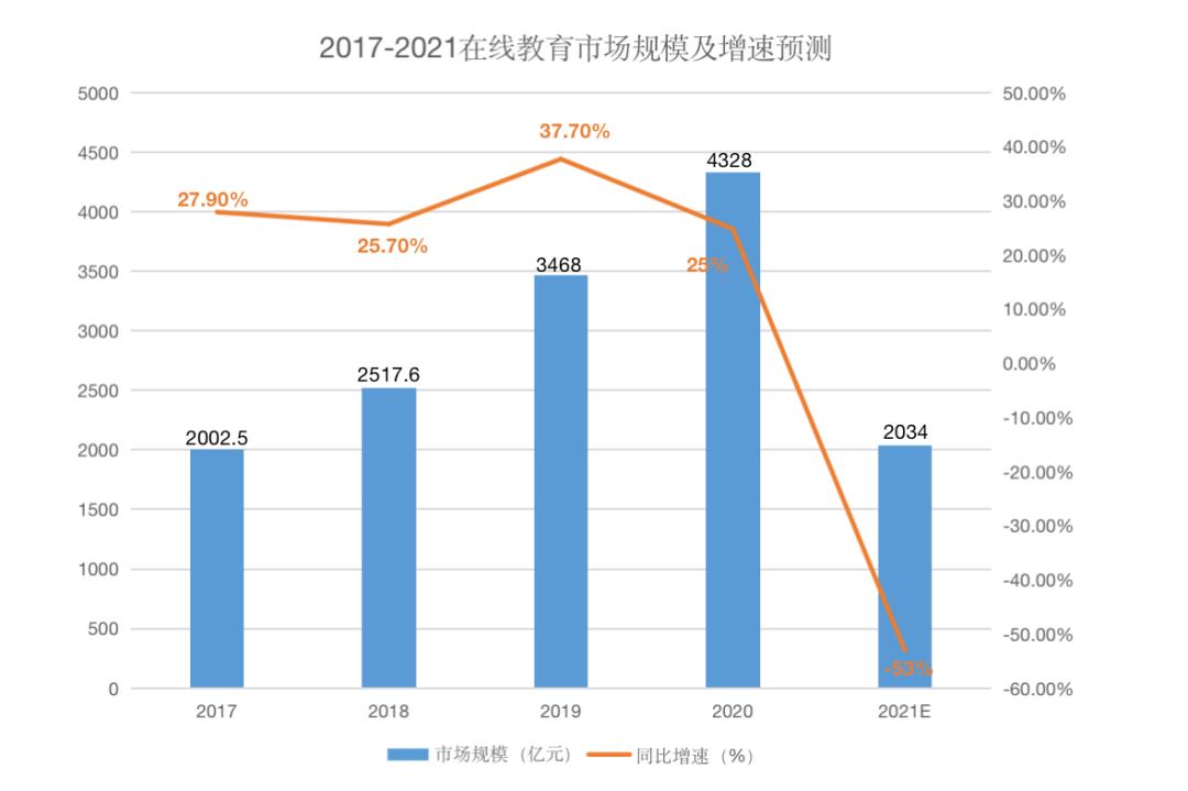 2021年受“双减”政策影响,预计我国教育培训行业市场规模将下滑至2034亿元,在线教育基本“团灭”,并且因不同类型教培机构之间的教学体系、课程体系以及师资培养体系等存在较大差距,转型较为艰难。