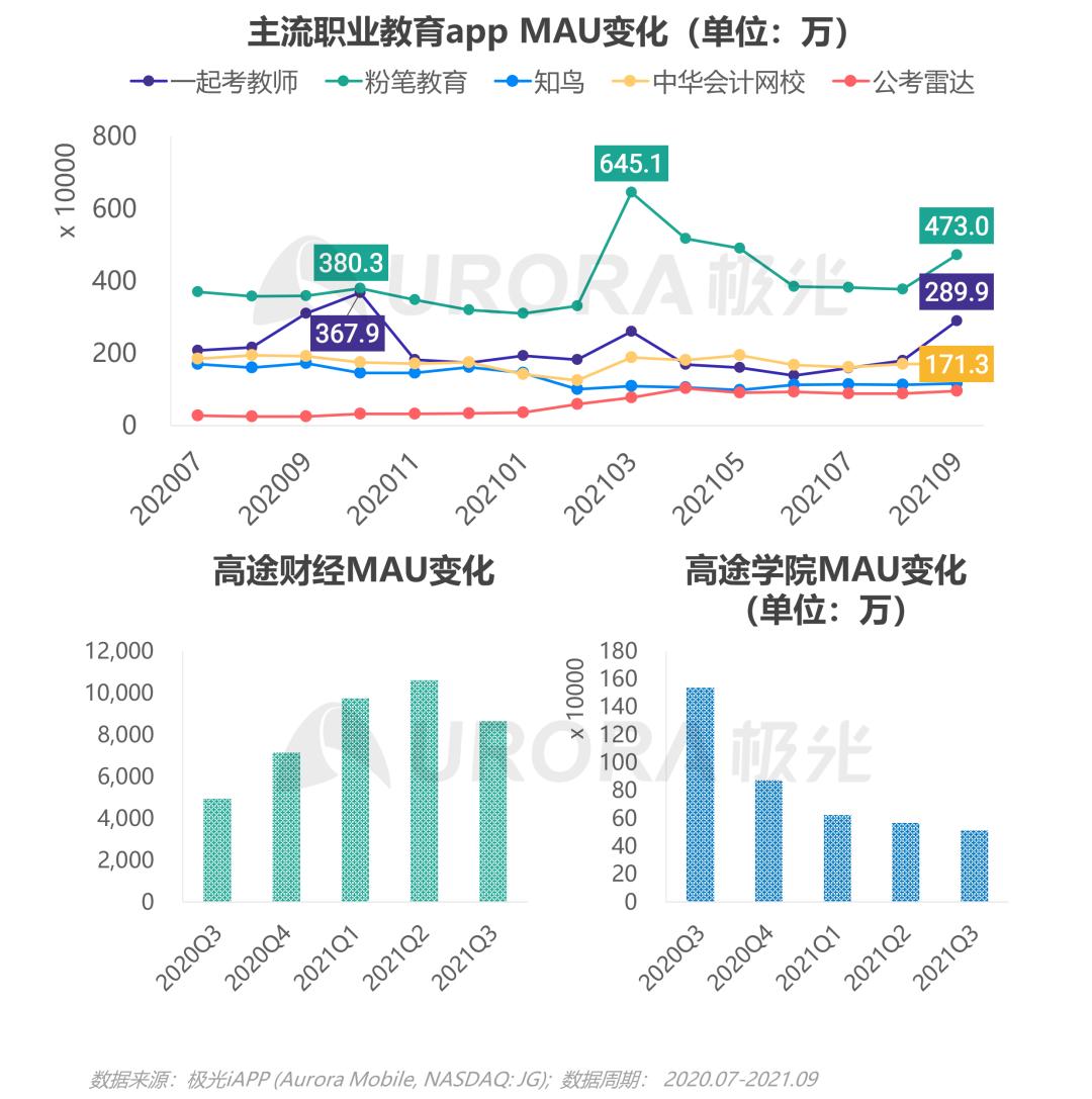 与公考节点对应,行业拉新高峰一般出现在9月和3月,2021年9月平均单日新增用户62.6万