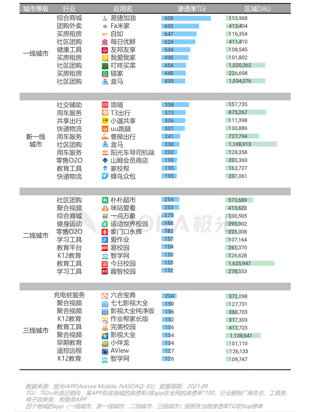 2021年第三季度,腾讯系app的整体渗透率继续保持在首位,各大企业的用户安装占比在8月均有轻微下降,9月回升
