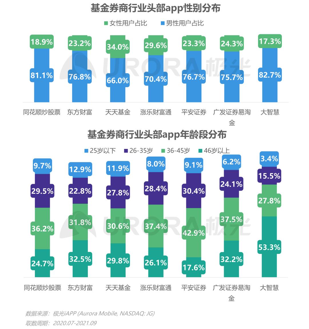 天天基金更受女性用户青睐,大智慧46岁以上用户占比过半