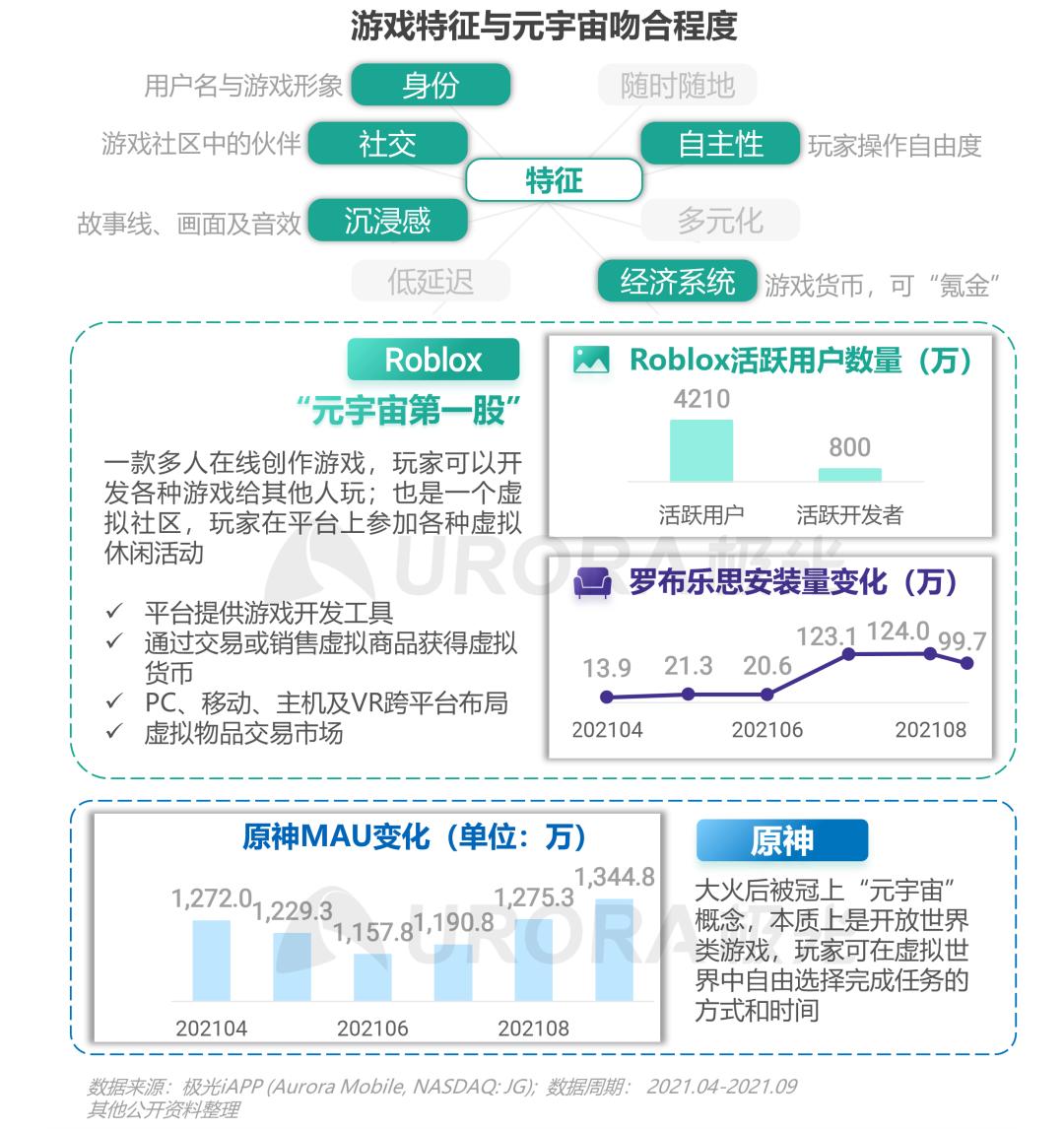 Roblox及其中文版罗布乐思搭建了一个用户可以生产、交易及社交的游戏生态,Roblox的开发者数量已达800万,中文版罗布乐思的安装量最高达124万,但热度有所回落;大火的原神作为开放世界类游戏,也被挂上“元宇宙”概念