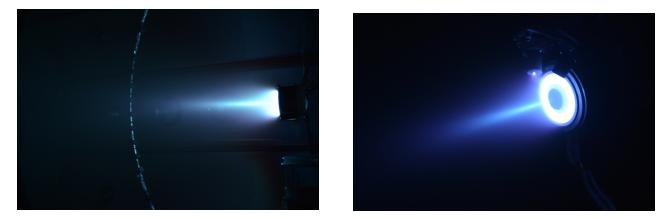 左为星空动力MPHT-80k 80mN电推进系统点火试验情况,工质为氙气;右为星空动力MPHT-20k 20mN电推进系统点火试验情况,工质为氪气