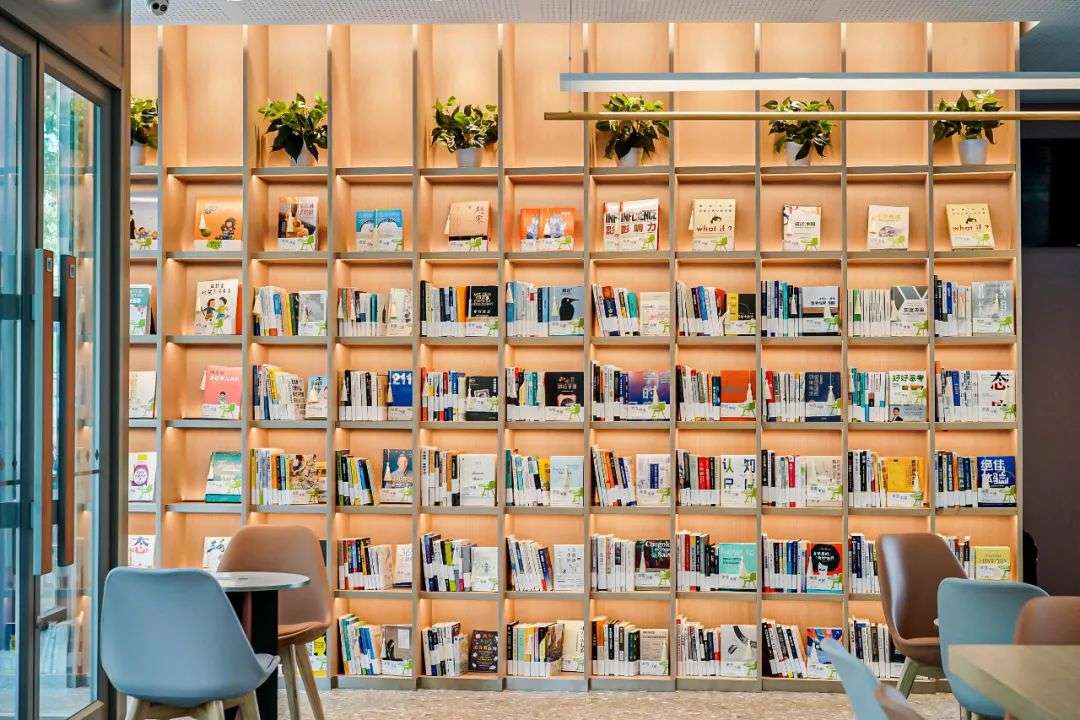内参君一进店,就被这好几面墙的“书香气”环绕。据奈雪的茶负责人介绍,这间“奈雪书屋”是奈雪的茶和中信书局联合打造的,门店内有上千款图书。因为门店正对马路,所以书屋的吊顶采用了冲孔板等吸音材料,以此更好地营造安静舒适的阅读环境。