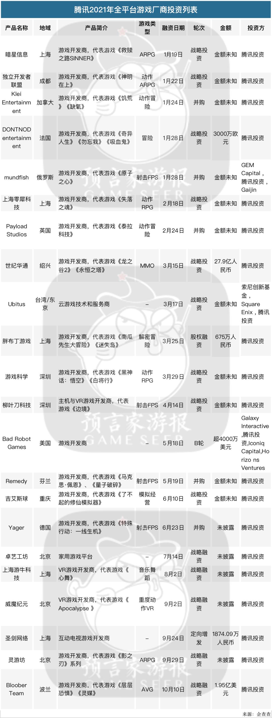 去年总结腾讯游戏投资版图的时候可以发现,海外的主机厂商仍然是腾讯青睐的对象。然而到了2021年我们可以悄然看到,腾讯对于国内全平台游戏厂商投资力度正在不断加大。
