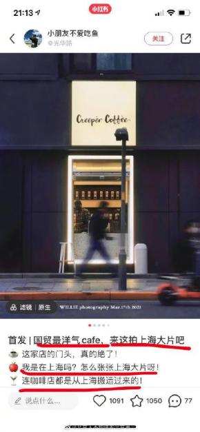 被人吹捧成北京国贸最洋气的咖啡店,下面的评论“这家店的门头,真的绝了!”,“连咖啡店都是从上海搬运过来”之类的。