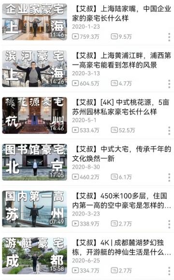 再比如B站“豪宅区”的一位UP主,他的常规视频就是去全国各地看豪宅。