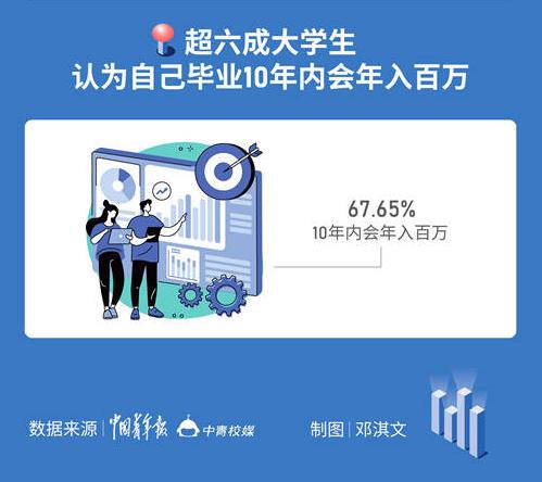 结果得到的答案却是,受访的六成以上的大学生认为,自己毕业10年内会年入百万。